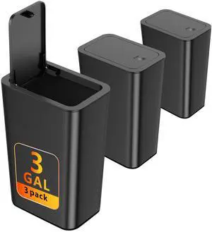 3 Pack Small Trash Can with lid, 3 Gallon Bathroom Trash Can,Garbage Can Slim Trash Bin Waste Basket for Bathroom,Kitchen,Bedroom,Living Room,Office,Laundry - Black