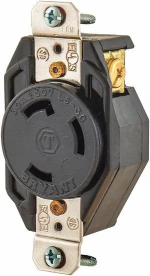 Black Locking Receptacle, 30 Amps, 250VAC Voltage, NEMA Configuration: L6-30R