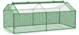 4' x 3' Galvanized Raised Garden Bed with Mini PVC Greenhouse Cover, Outdoor Metal Planter Box with 2 Roll-Up Windows for Growing Flowers, Fruits, Vegetables and Herbs, Clear