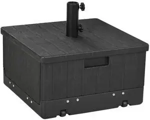 3-in-1 Outdoor Umbrella Base, Coffee End Table, Flower Box Planter, 175lbs Capacity Patio Umbrella Stand Table with Wheels and Handles, Brown