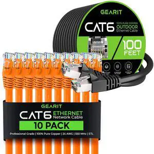 GEARit 10Pack 10ft Cat6 Ethernet Cable & 100ft Cat6 Cable