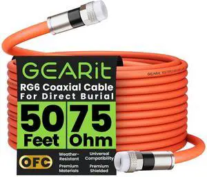 GEARit Coaxial Cable for Direct Burial (50ft) RG6 70 Ohm RF Waterproof Underground in-Wall with Rubber Boot, High-Speed Internet, Broadband, Digital TV Aerial, Satellite 50 Feet