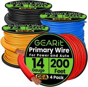GEARit 14 Gauge Wire CCA 200 Ft Each-Black/Red/Blue/Yellow(800 Feet Total) 14 AWG Ground Power Wire Battery Cable for Automotive,Car Audio Speaker,Welding,Lighting,Trailer Harness,Electrical
