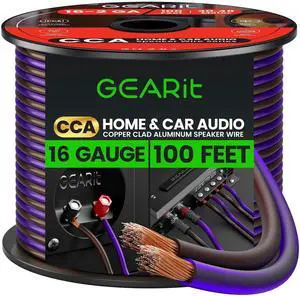 GEARit 16 Gauge Speaker Wire 100 ft,16 Gauge Wire with Foot Markers & Polarity Markings,Flexible Speaker Cable for Car Audio & Home Theater Speakers,Audio Cable for DIY Installations,CCA(Black Purple)