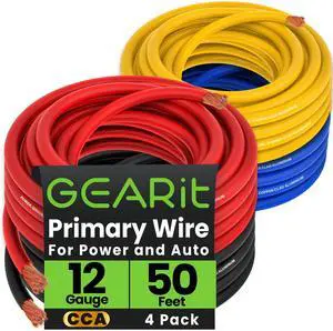 GEARit 12 Gauge Wire CCA 50 Ft Each-Black/Red/Blue/Yellow(200 Feet Total) 12 AWG Ground Power Wire Battery Cable for Automotive,Car Audio Speaker,Welding,Lighting,Trailer Harness,Electrical