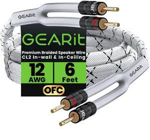 GearIT 12AWG Premium Heavy Duty Braided Speaker Wire (6 Feet) with Dual Gold Plated Banana Plug Tips - Oxygen-Free Copper (OFC) Construction, White