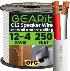 GearIT 12/2 Speaker Wire (250 Feet) 12AWG Gauge - in Wall Audio Speaker Wire Cable / CL2 Rated / 2 Conductors - OFC Oxygen-Free Copper, White 250ft