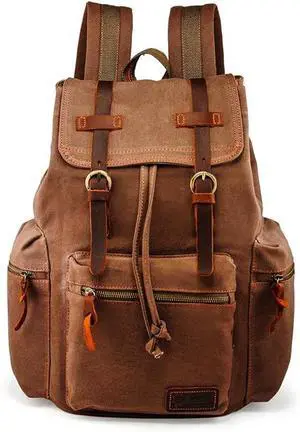 GEARONIC Vintage Canvas Backpack, Casual Daypack Backpacks for Men Women, 15inch Laptop Bag Travel Hiking Camping Rucksack - Brown