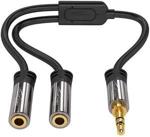 3.5mm Y Adapter & Jack & AUX Splitter (1×3.5mm Male to 2× Female, Connect Two Sets of Headphones to a Smartphone/Tablet/Notebook, Stereo, 4in, Black)