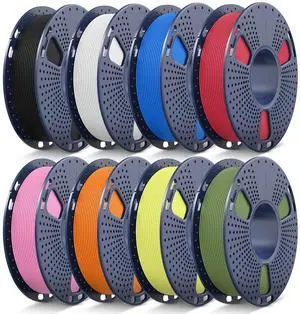 8 Color Bundle Elite PLA+ 3D Printer Filament, Multicolor PLA+ 1.75mm, Individually Vacuum Packed, 0.25kg Spool, 8 Pack (Black+Cream White+Grey+Orange Yellow+Red+Dark Blue+Green+Iris Purple)