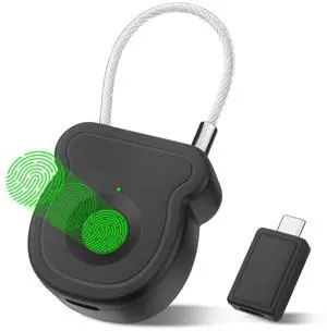 Fingerprint Padlock Lock with Key Backup, Biometric Metal Keyless Thumbprint Combination Lock, Waterproof, USB Rechargeable, for Gym Locker, School Locker, Luggage, Backpack, Suitcase