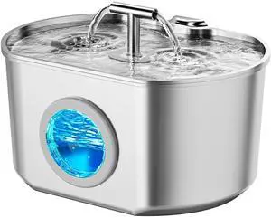 Cat Water Fountain Stainless Steel - Pet Drinking Fountain for Cats Indoor - 2.2L/74oz Automatic Water Dispenser with Watering Level Window (1 Filter)