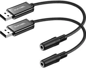 USB to 3.5mm Audio Adapter (2-Pack),External Stereo Sound Card with Dual TRS 3-Pole 3.5mm Headphone and Microphone Jack for PS4/PS5/PC/Laptop, Built-in Chip Mic-Supported Headphone Adapter