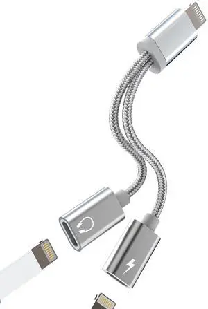 MFi Certified 2-in-1 Lightning to 3.5mm Headphone Jack Adapter,Fast Charger&Aux Audio Splitter Dongle for iPhone-Car AUX,Home,Gym,Travel,Compatible with iPhone 14/13/12/11/XR/X/8/7,2Pack,White