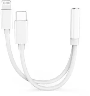 iPhone Headphone Adapter, [Apple MFi Certified] 2-in-1 Lightning/USB Type C to 3.5 mm Headphone Jack Adapter, iPhone Aux Adapter Converter Dongle Audio Cable for iPhone 17 16 15 14 13 12 11 XS XR X 8