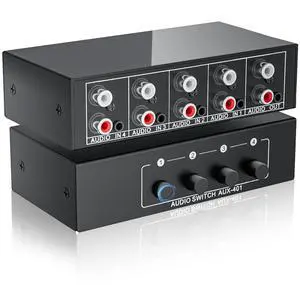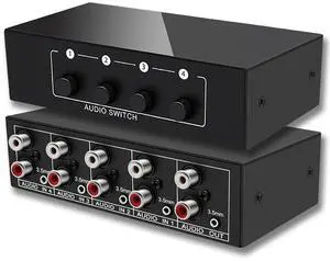 3.5mm Aux + RCA L/R Audio Switch Box 4 in 1 Out Bidirectional, Stereo Audio Switcher Selector 4X1 Passive a/b Analog Audio Selector No Power Need