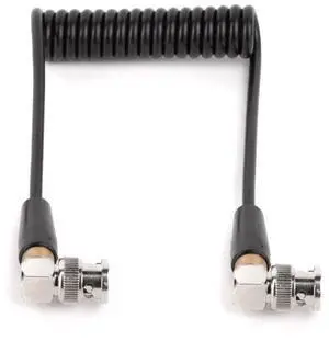 Coiled BNC to BNC Cable, 10" Resting to 20" Extended, Right-Angle Connectors, HD, SDI, for Wireless Systems and On-Board Monitors
