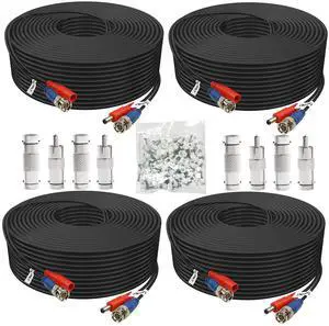 BNC Cable 4x100FT, All-in-One Siamese Video and Power Security Camera Wire, Camera Cable for All Max 5MP HD CCTV DVR Surveillance System (100FT 4PACK, Black)