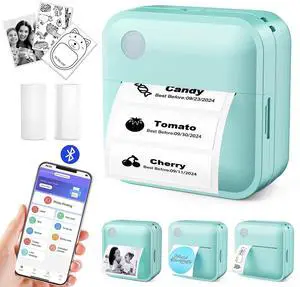 Label Maker Machine with Tape - Thermal Label Printer Bluetooth Label Maker Machine, Mini Printer Sticker Maker for Home, Kitchen, School, Office Organization (Green)