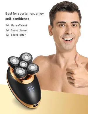 Electric Shavers for Men - 5 in 1 Bald Head Shavers for Men, 5D Floating Cordless USB Rechargeable Rotary Razor Multifunctional Grooming Kit Beard Trimmer Waterproof Wet and Dry with LED Display