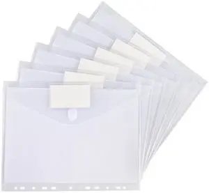30Pcs Binder Pocket, Binder Organizer, 11 Holes Clear Poly Binder Envelope with Hook and Loop Closure, Plastic Binder Folders for School and Office Supplies, Letter Size