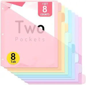 8 Count Dividers with Two Pockets, 8 tabs Binder Dividers for 3 Ring Binder Organizer, Multicolor, 1 Set