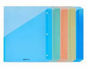 Binder Organizer, Plastic Document Folders, File Jacket, 3-Hole Punch, 9.3 x 11.2 inches, Assorted Colors, 25-Pack