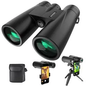 12x42 HD Binoculars for Adults High Powered with Phone Adapter and Tripod, Super Bright BAK4 Prism Waterproof Binoculars for Bird Watching Hunting Hiking Safari Travel Sports