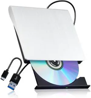 External CD/DVD Drive for Laptop, Ultra Slim 13mm USB 3.0 Type-C Portable DVD Player CD Burner Reader Writer Recorder for Desktop PC Windows 11/10/8/7 Linux Mac OS, White