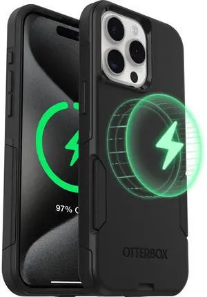 iPhone 15 Pro - Commuter MagSafe Case - Slim & Tough - Pocket-Friendly - Dual Layer Drop Protection - Port Covers Non-Retail Packaging - Black