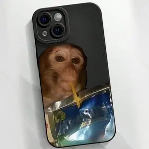 for iPhone12 13 14 15 16Pro Max Monkey Drinking Water Phone Case Silicone TPU (Black, IP 15)
