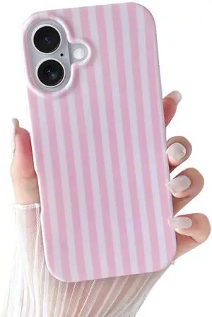 for iPhone 17 Case Cute Striped Phone Case Soft TPU Slim Shockproof Phone Cover for Women Girls, Pink
