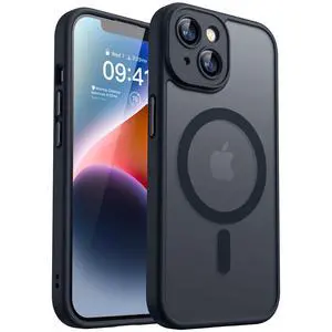 Magnetic for iPhone 14 Case, Upgraded [Full Camera Protection] [Compatible with Magsafe] [Translucent Matte] Shockproof Protective Phone Case for iPhone 14 6.1" - Black