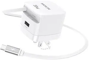 Fast Charger for iPhone 16 Pro Max, 30W GaN USB-C Charger Block, 2 Port w/Built-in Retractable C Cable & Foldable Plug, PD/PPS for iPhone 16 Series/Pixel 9 pro/Galaxy/iPad (USB C Cable)