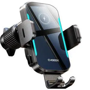 15W Wireless Car Charger Auto-Clamping Qi Fast Charging Vent Mount with LED Light; Compatible with iPhone 13-16 & Samsung S22-S24