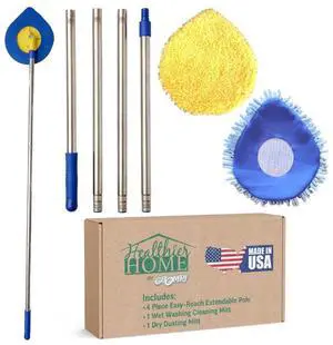 Long Handle Wall Cleaner, 5 Minute CleanWalls Extendable Wall Washer, Ceiling Cleaner, Baseboard Duster, Telescoping Dry Dust and Wet Wash Cleaning Mop with Washable Microfiber Pad