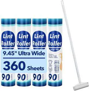 Large Lint Rollers for Carpet, 9.45'' Sticky Rollers for Floor with 360 Sheets, Extendable Long Handle Sticky Mop for Cleaning Couch, Curtains, Cars, Clothing, and Pet Hair