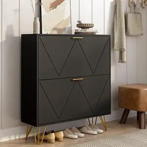 Tradare Black Shoe Cabinet Storage for Entryway, Narrow Shoe Cabinet with 2 Flip Drawers,Freestanding Organizer with Fluted Panel for Living Room, Bedroom, Hallway, Closet, Holds 24 Pairs