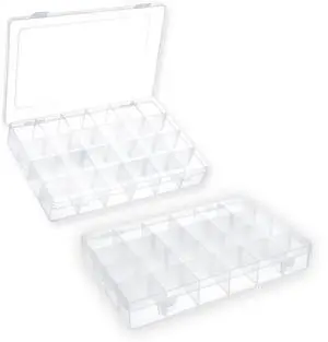 2 Pack 24 Grids Plastic Small Crafts Storage Boxes with Adjustable Dividers (10.5" × 6.7" x 1.57")