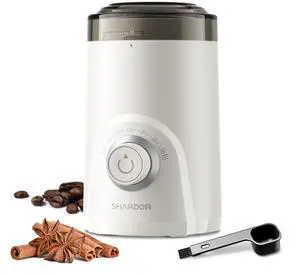 Electric Super Silent Blade Coffee Grinder, Timed Grind Control Rotary Knob, Adjustable Coarse to Fine for Coffee Beans, Spices & Herbs, White