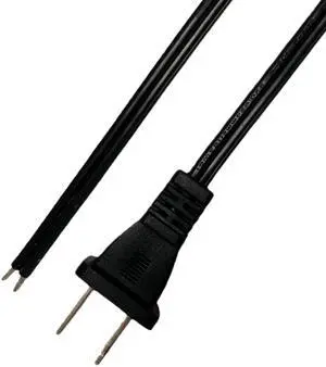 AC Power Pigtail 2 Prong Cable, Replacement Cable 120V Wall Plug, Polarized Cord Black, 10ft Replacement Power Cord Pigtail, 18AWG