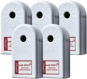 Leak Alert Water Leak Detector & Flood Sensor Alarm/Water Leak Sensor with Dual Leak Alarms 90dB Audio/Battery Powered (5 Pack) Batteries Not Incuded, (72310)