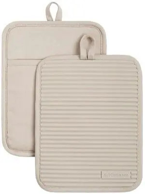 Ribbed Soft Silicone Pot Holder 2-Pack Set, Milkshake Tan, 7"x9"