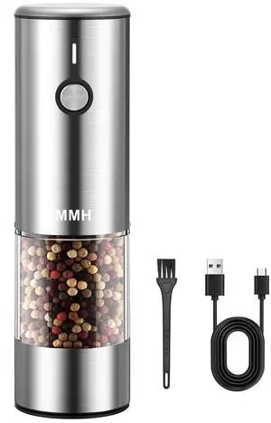 Electric Salt and Pepper Grinder, Rechargeable with 6 Level Adjustable Coarseness, Easy to Refill, Stainless Steel One Handed Automatic Salt and Pepper Shakers Refillable with LED light