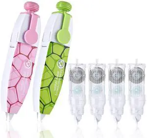 White Correction Tape, Retractable Correction Tapes with 4 Extra Refills, Refillable White Pull Out Pens, Instant Corrections Easy to Use Applicator for School Office Supplies (Green & Pink)