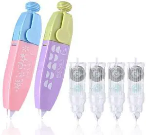 White Correction Tape, Retractable Correction Tapes with 4 Extra Refills, Refillable White Pull Out Pens, Instant Corrections Easy to Use Applicator for School Office Supplies (Multicolor)