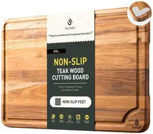 Extra Large Teak Wood Cutting Board 20inch for Kitchen Non Slip Feet Over Sink Butcher Block Chopping Board Nice Solid Thick Wooden Juice Groove Big Xl XXl large Best Hardwood Kitchen Counter Organic