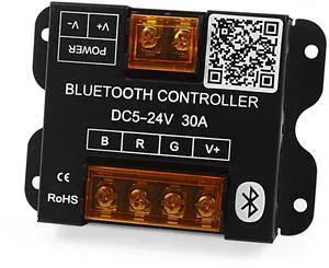 Bluetooth LED Music Controller DC5-24V 30A Smart RGB Bluetooth Controller with Timer Function for 5050 3528 RGB LED Light Strip, iOS Android Smartphone App Control, Metal Shell