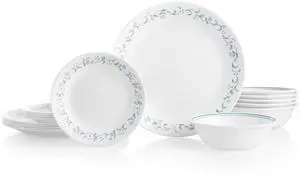 Vitrelle 18-Piece Service for 6 Dinnerware Set Triple Layer Glass and Chip Resistant, Lightweight Round Plates and Bowls Set, Country Cottage