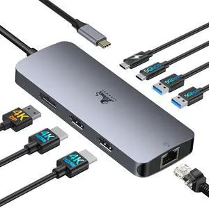 USB C Docking Station Dual Monitor, LIONWEI Laptop Docking Station 3 Monitors with 2 HDMI, 4K DisplayPort, 1Gbps Ethernet, 100W PD, 3 USB A/C 3.0, USB C Hub Multiport Adapter for Dell/Len/HP